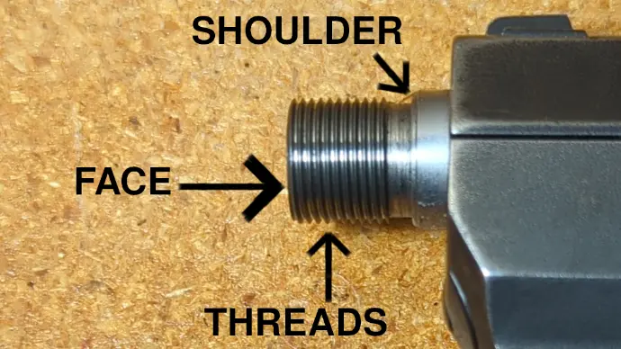 Most muzzle devices index off the barrel shoulder. Indexing properly is important because that is how the suppressor aligns with the barrel. A misaligned suppressor is a high risk for a baffle strike.
